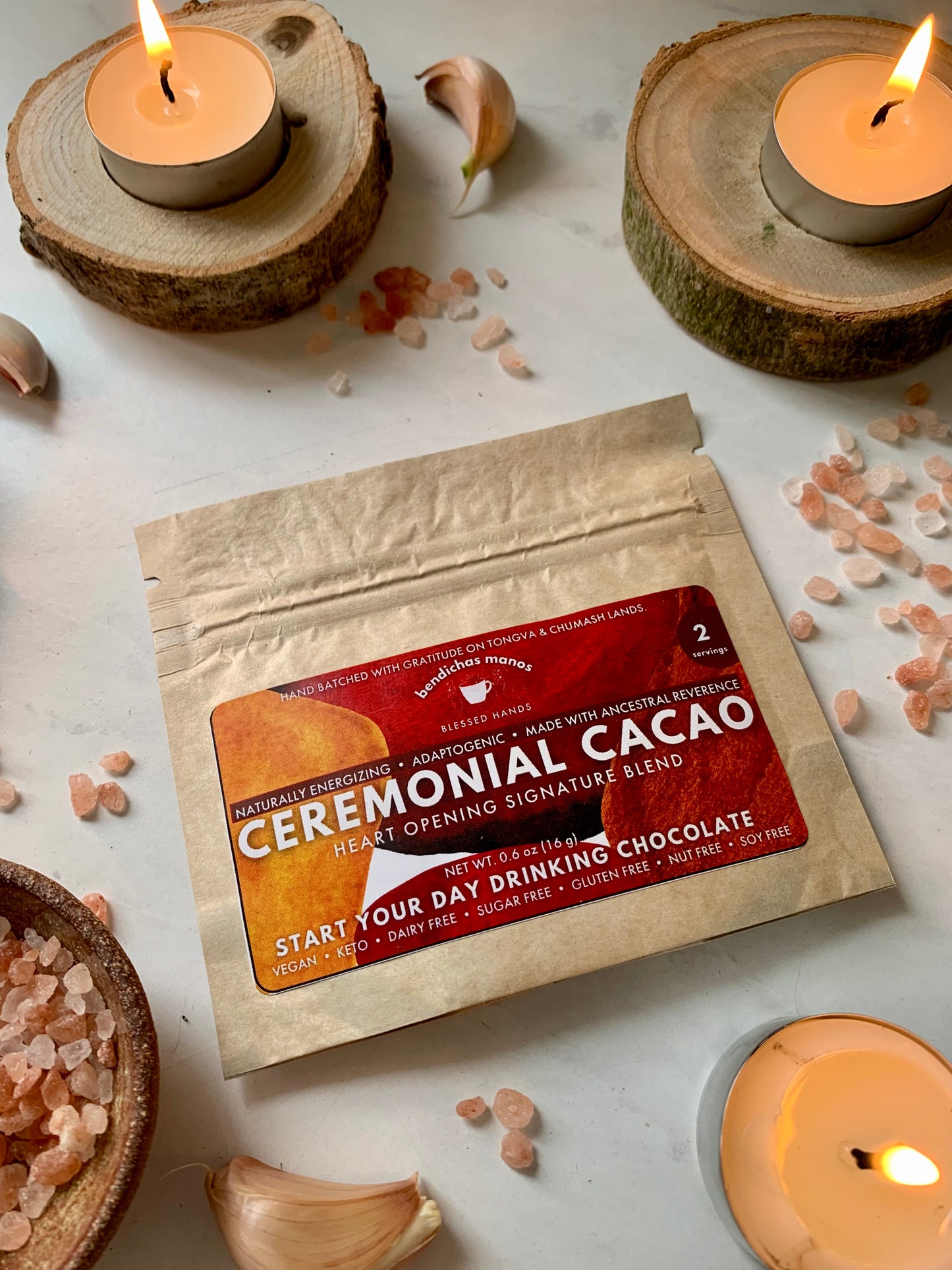 Bendichas Manos is honored to bring you small batch Ruk’u’x’Ulew ceremonial cacao, a 100% Mayan owned women's collective, complimented by our signature blend of maca, red reishi, cinnamon, gotu kola, bacopa, and trikatu (ginger, black pepper, & pippali).